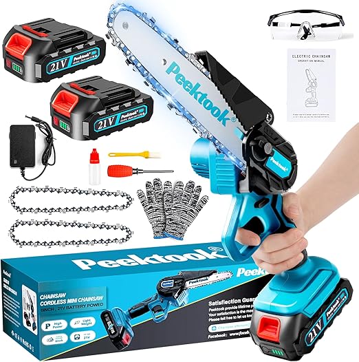 Mini Motosierra Bateria 6 Pulgadas, 1000W Motor Sin Escobillas Motosierra Eléctrica con 4000mAh Baterías y 2 Cadenas, motosierra de mano portátil Inalámbrica para Podar Árboles de Jardinería y Madera