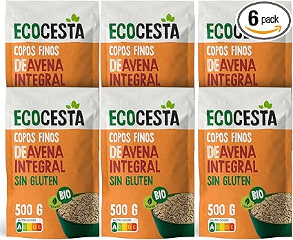 Ecocesta – Pack de 6 Unidades de 500 g de Copos Suaves de Avena Integral Ecológica – 500 g – Sin Azúcar Añadido – Aptos para Veganos – Alto Contenido en Fibra – Aporta una Dosis Extra de Energía