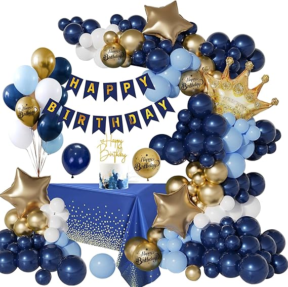 Decoraciones azul marino y dorado, pancarta feliz cumpleaños, guirnalda de globos para aniversario