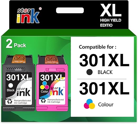 Starink 301XL Cartuchos de Tinta Negro y Tricolor para Tinta HP 301,para Cartuchos HP 301 XL,DeskJet 1050 1510 2050 3050 2543 2510 2550 Envy 4500 4502 4503 5530 Officejet 2620 2622 4630,Pack de 2