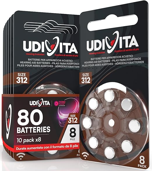 80 Pilas para Audífonos Tamaño 312 Udivita PR41 (Marrón) Zinc-Aire Hearing Evolution Tecnología Phono Pulse – 10 Blísteres de 8 Pilas
