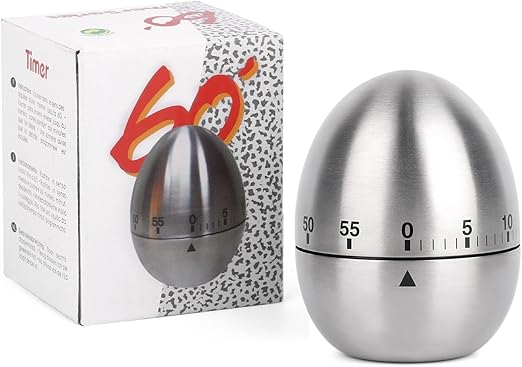 Temporizador de Cocina, Temporizador Mecánico de Cocina, Inoxidable, hasta 55 Minutos, Plata
