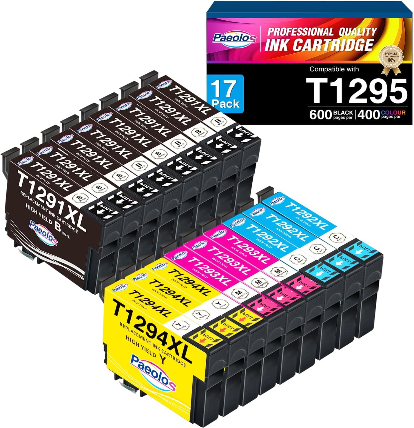 Paeolos T1295 Multipack Cartuchos de Tinta Compatible para Epson T1291 T1292 T1293 T1294 für Epson Stylus SX435W SX235W SX420W SX230 SX425W SX440W SX445W,..