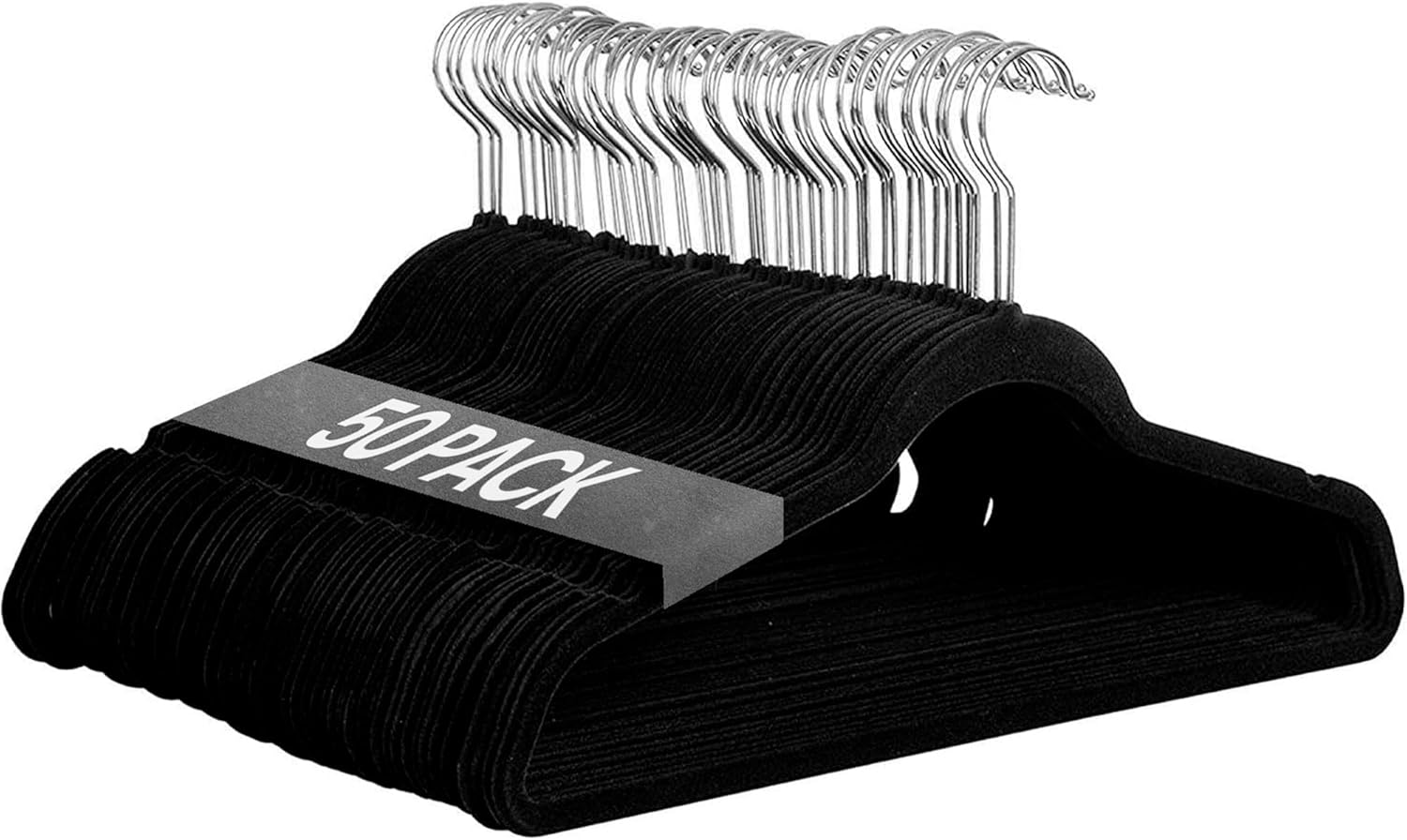 Ediesi, Perchas Terciopelo, 50 Unidades, Negro, Antideslizantes, Suaves, Finas, para Pantalón, Camisa, Falda, Trajes (50 Unidades, Negro sin corbatero)