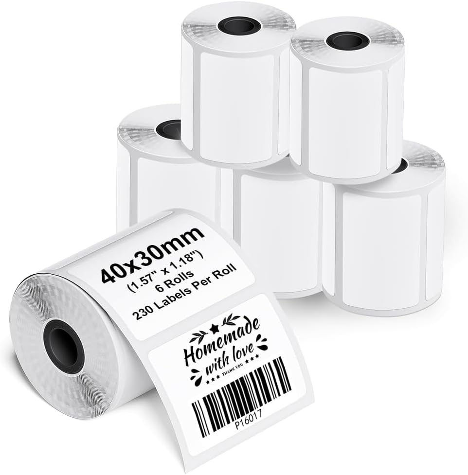Phomemo M110/M220/M221/M200/M120 Etiqueta autoadhesiva papel de etiqueta térmica 1.57″x1.18″ (40×30 mm), para Impresoras de etiquetas Phomemo