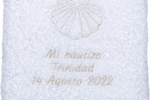 CARREDANA Personalised Embroidered Baptism Towel with Lace. Customize Name, Colour and Date. Personalised Baptism Towel. Baby Baptism Gift, 100% Cotton (Medium Towel: 50 x 100 cm)