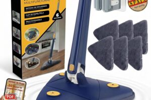 Mopa Triangular Giratoria 360 Autoescurrible de Microfibra, Mopa para Limpiar Azulejos y Paredes, Colgador, 6 Recambios, Manual y Trucos. Fregona…