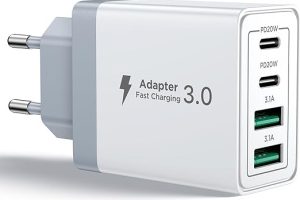 Aioneus Cargador USB C, 40W 4-Puertos USBC Enchufe Cargador iPhone Carga Rapida, Múltiple Cargador QC3.0 y PD Rápido Pared Adaptador Tipo C para iPhone 16 15 14 13 12 11 Pro MAX XR XS 8 7,iPad,Samsung