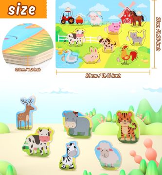 Japace Puzzles de Madera Juguetes Bebes, 6 en 1 3D Actualizar Rompecabezas de Madera de Animales, Juguetes Montessoris Educativos para 1 2 3 4 Años Niños..